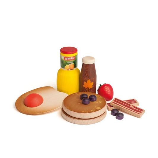 Дървен комплект за игра с хранителни продукти - Американска закуска