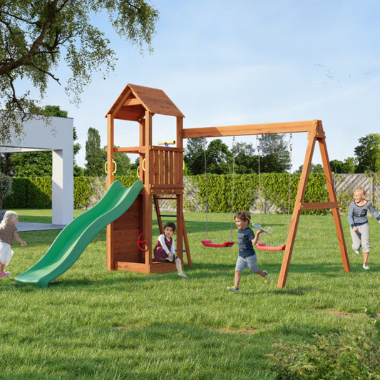 Дървена Детска Площадка С Пързалка и 2 Люлки FLAPPI