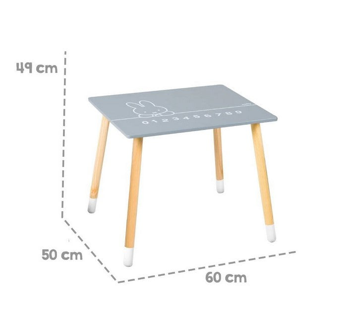 Акцентът на детския комплект мебели е зайчето miffy: облегалките на столовете изобразяват сладкото му личице. Плотът на масата също е украсен със сладкото зайче от серията miffy и цифрите от 0 до 9. Помогнете на малките герои да се почувстват като в приказка заедно със серията Roba miffy!