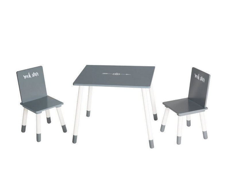 Комплекта се състои от елегантна детска масичка с две удобни столчета.
