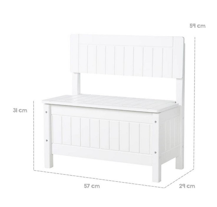 Детската пейка-ракла за съхранение Roba White изработена от МДФ и масивно дърво, вашето малко сладурче може да седне удобно да играе, да твори, и да се забавлява.