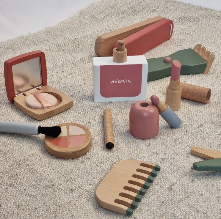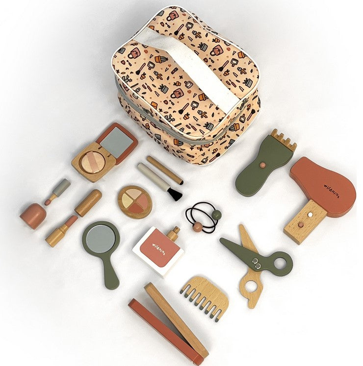 С този красив комплект за фризьор и грим от дърво, малките стилисти ще могат да създават оригинални прически и креативен грим, докато се забавляват и подражават на големите. Това е чудесен подарък, който стимулира въображението, творчеството и играта на роли.