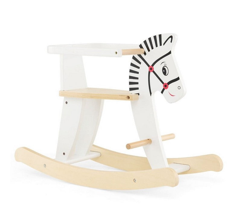 Нашето дървено люлеещо се конче с извита основа се люлее лесно напред и назад. Наклонът от 11° до 22° предотвратява преобръщането му по време на люлеене. Докато се люлеят, малчуганите ще подобрят двигателните си умения и координацията си. Те могат също така да боядисат повърхността, за да създадат свое собствено люлеещо се конче, което им осигурява още повече забавление. То има предпазни решетки и облегалка за предотвратяване на падане. Изработена от масивна дървесина и MDF, тя е достатъчно издръжлива и здрава, за да издържи до 40 кг и да служи дълго време.
