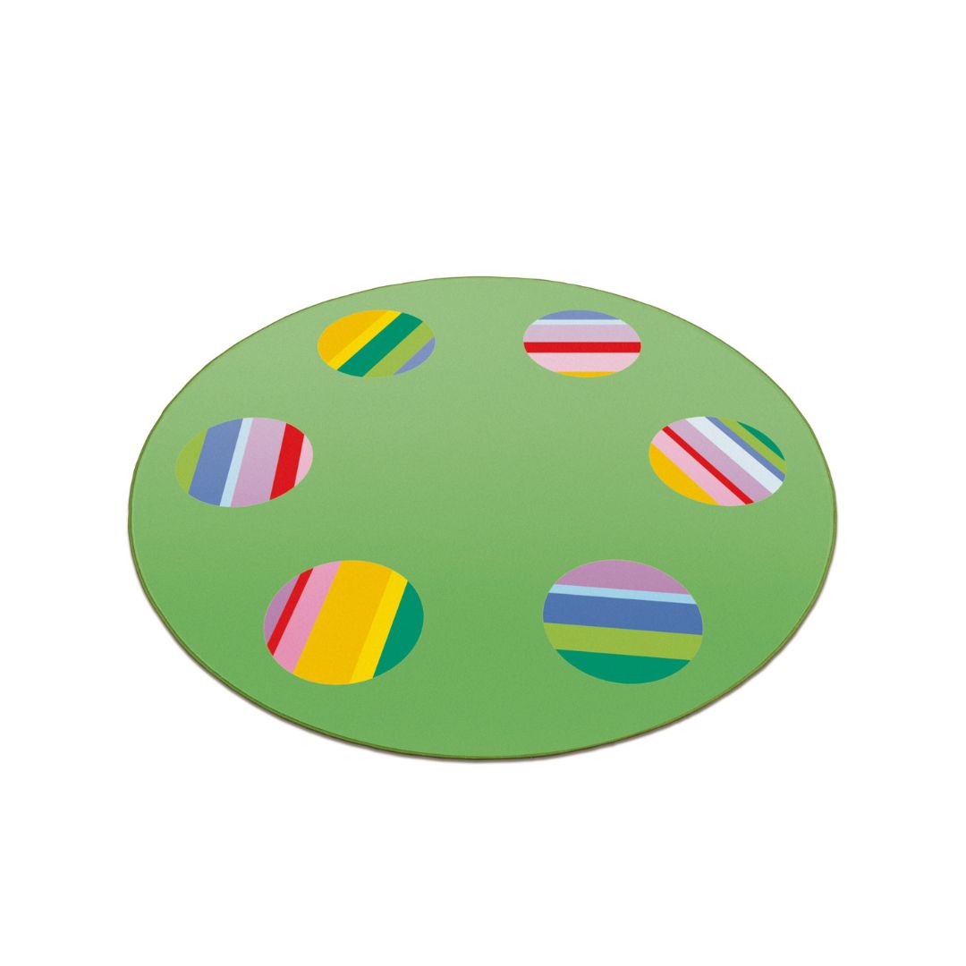 Цветен килим за провеждане на игри в кръг. Тук можете да намерите място за до 6 деца във формата на цветен раиран кръг. По този начин всеки ден може да започне щастливо.