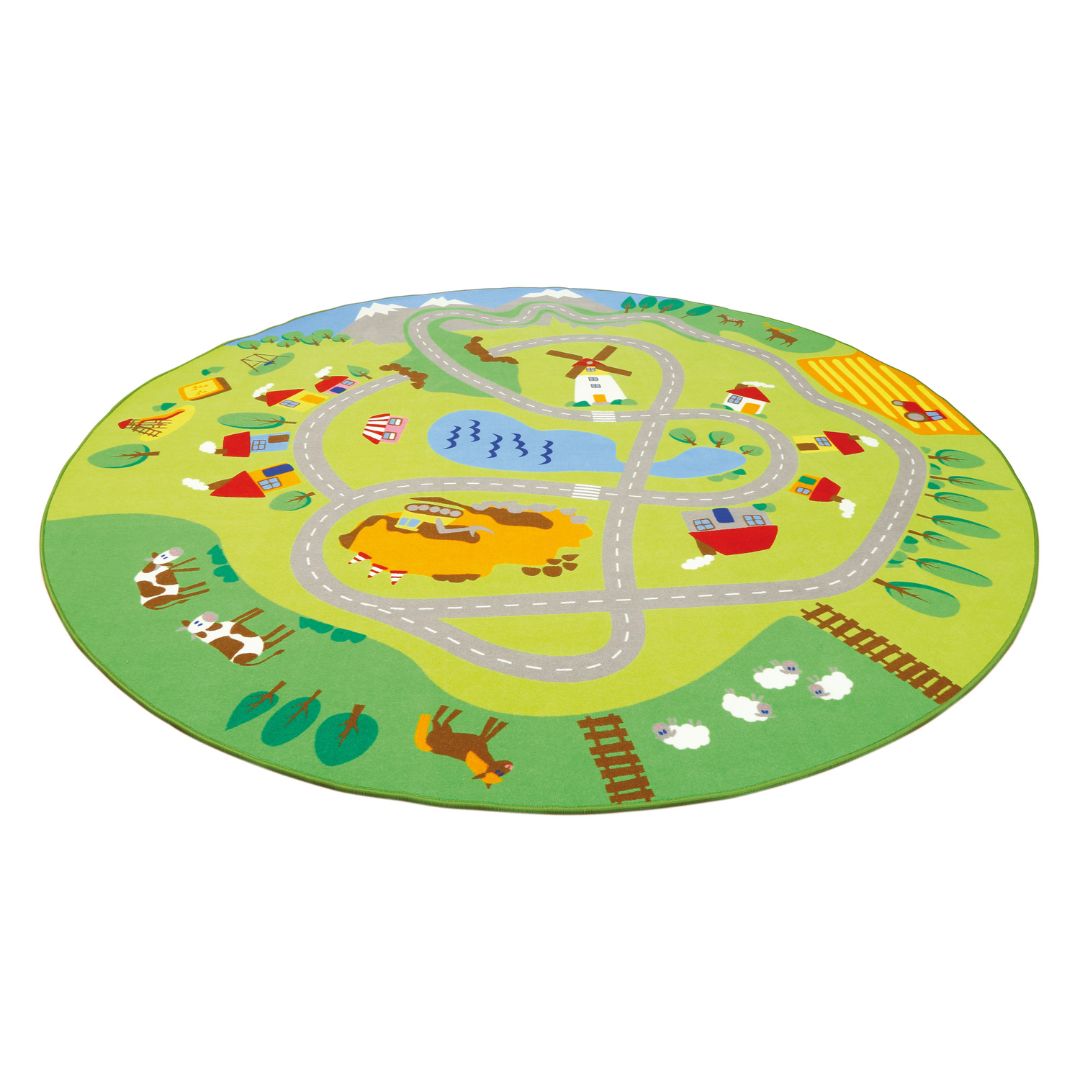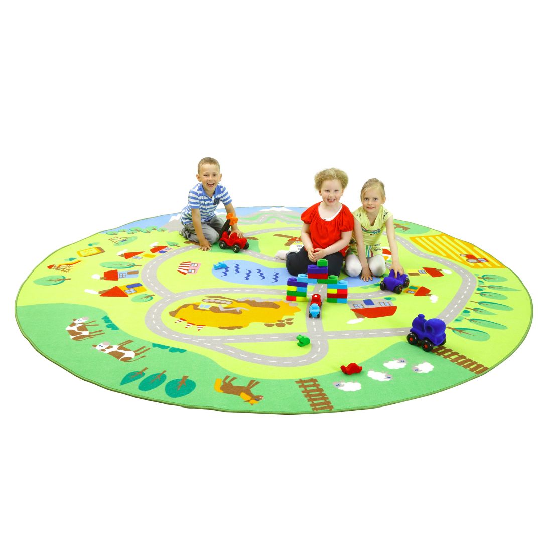 Голям Кръгъл Килим Град, Село и Река, за детски градини, детски кът - 300 см