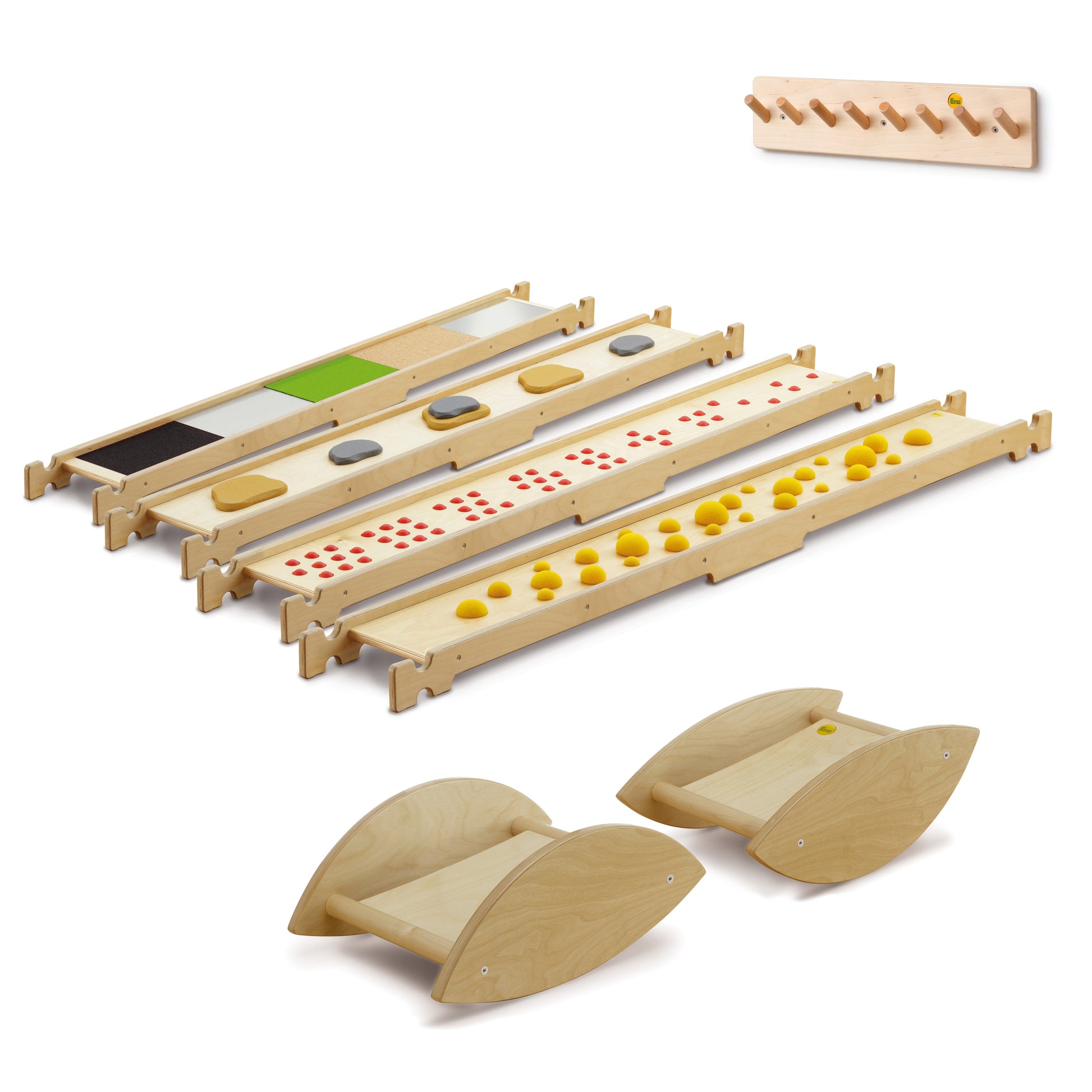 Комплектът "Балансиращо игрище" насърчава двигателните умения и концентрацията. Децата несъзнателно се учат как да общуват с други деца, тренират своята независимост и укрепват езика и сръчността си.