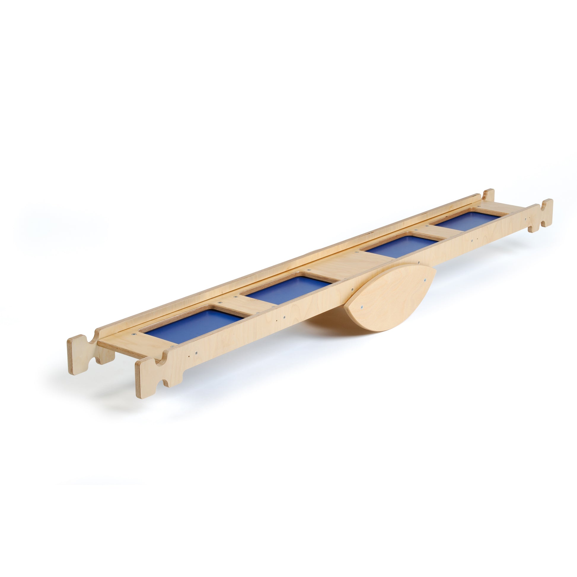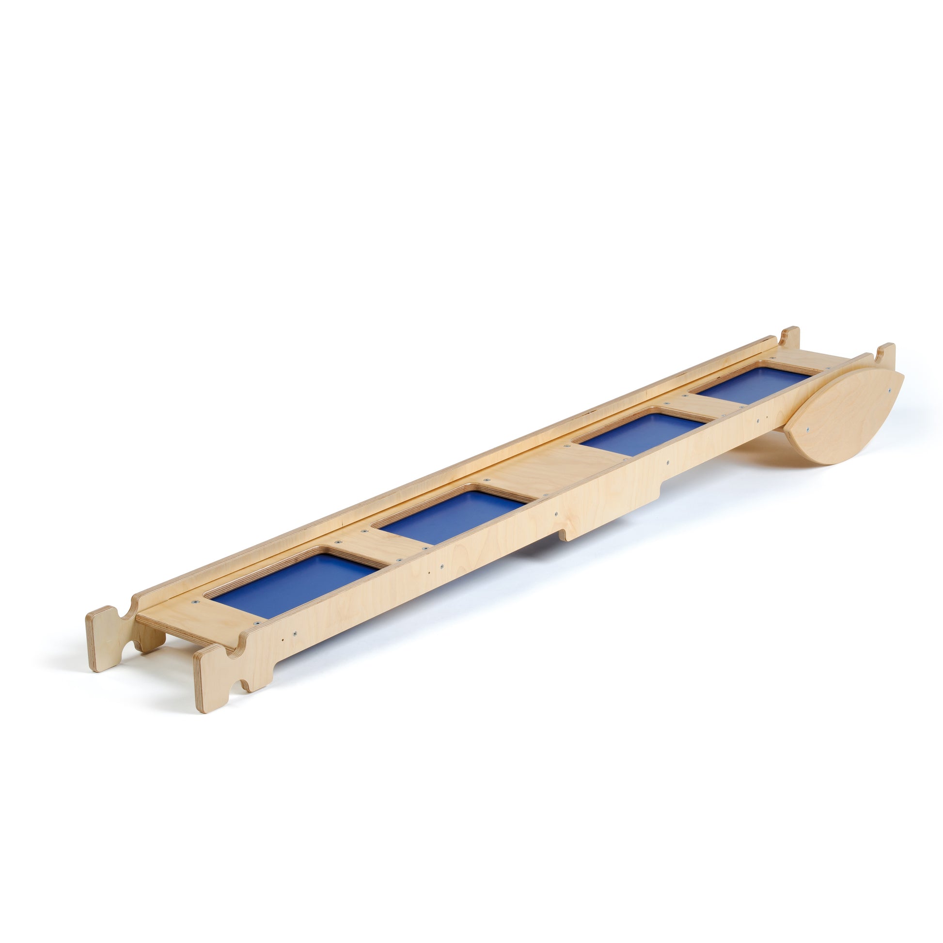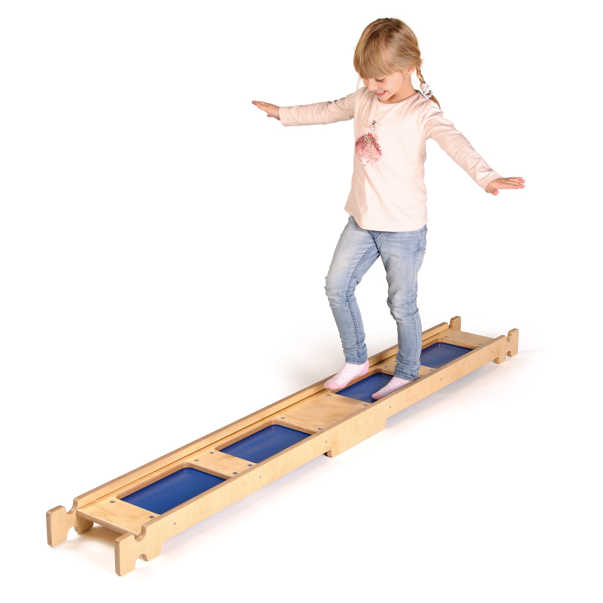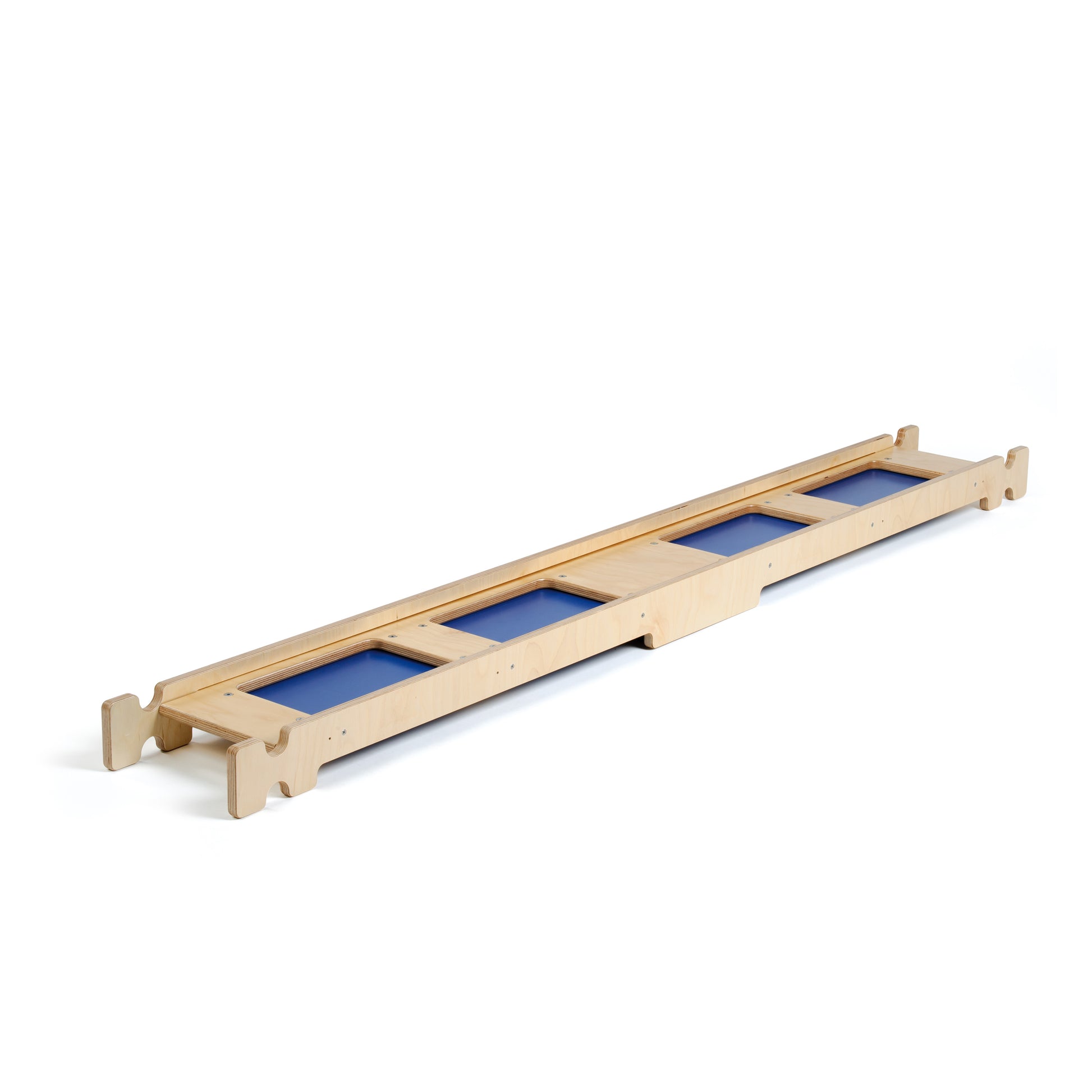 Можете да скачате от локва в локва и без гумени ботуши. Сините пластмасови полета са изработени от по-мек и динамичен материал. Това се чувства почти колебливо! Това означава, че те представляват ясен контраст с масивните дървени подпори. Взаимодействието особено предизвиква баланса и осигурява вълнуващи тактилни стимули при ходене боси. Универсалните балансиращи дъски от Erzi предлагат страхотни, разнообразни стимули за движение, осъзнаване на тялото, баланс, концентрация и усещане за докосване с различни фокуси и идеи: Тук трябва да изпитате игриво различни повърхности, там трябва да пресичате масивни дървени блокове. Всички дъски за балансиране могат да издържат до 100 или 120 кг и могат да се използват в широк възрастов диапазон. Балансиращите дъски могат да се използват в легнало положение. Това е особено подходящо за начинаещи, за да се запознаят с изискванията на дъската за балансиране и собствените си физически способности. Нещата стават наистина вълнуващи, когато комбинирате балансиращата дъска с друг спортен елемент: като я окачите в стенни щанги (Ø 35 mm), спортна кутия Erzi или трапец блок Erzi, се създават наклонени нива, които увеличават предизвикателството. Можете да регулирате трудността, както желаете, като използвате различни ъгли и височини. Балансиращите дъски започват да се движат, когато ги окачите в средата на люлката Erzi Rocky Rocker. Животът с накланяне и люлеене представлява ново предизвикателство за координацията на тялото. А децата обичат люлеещите се движения! Ако свържете две балансиращи дъски с помощта на Rocky Rocker, можете дори да създадете дълго, люлеещо се трасе за балансиране.