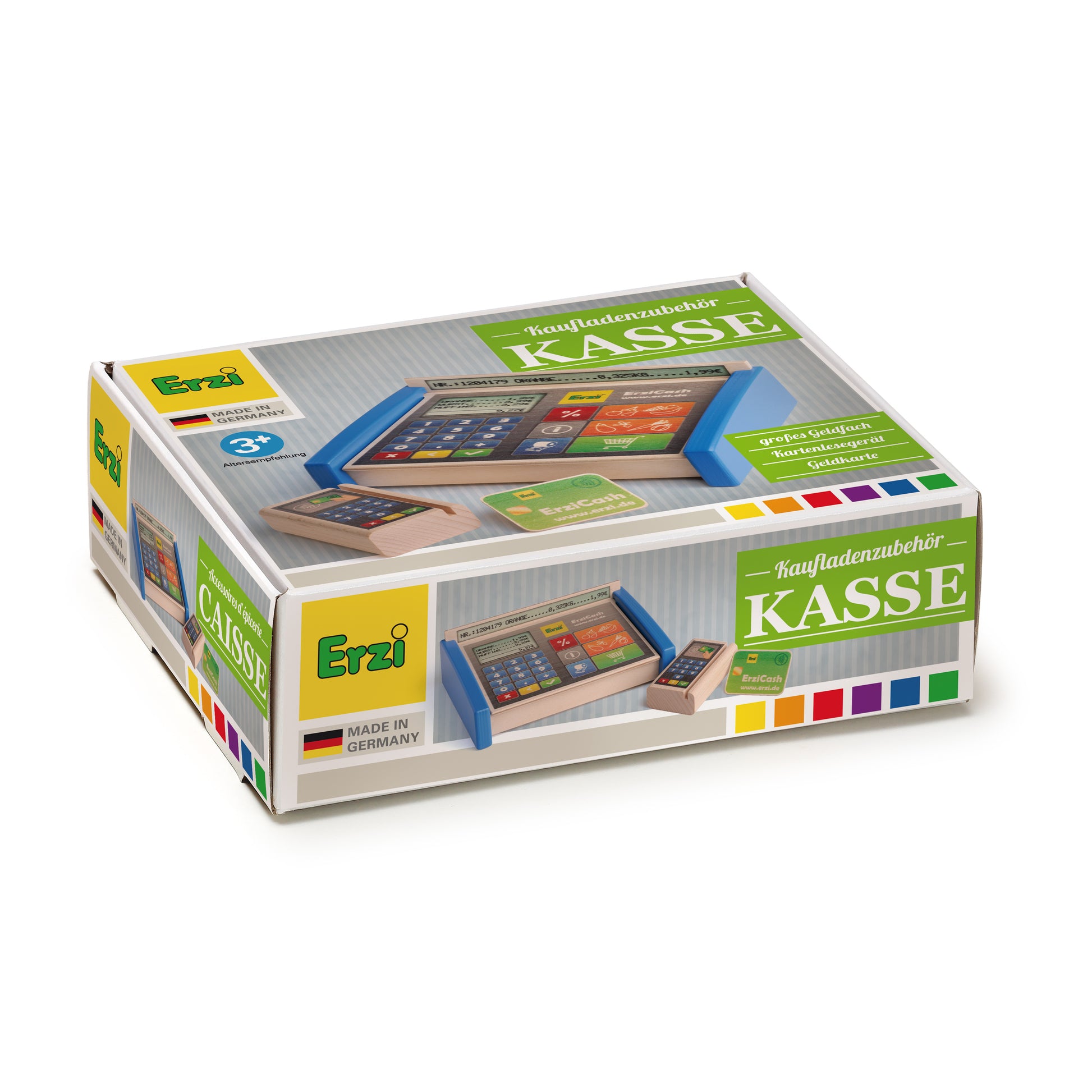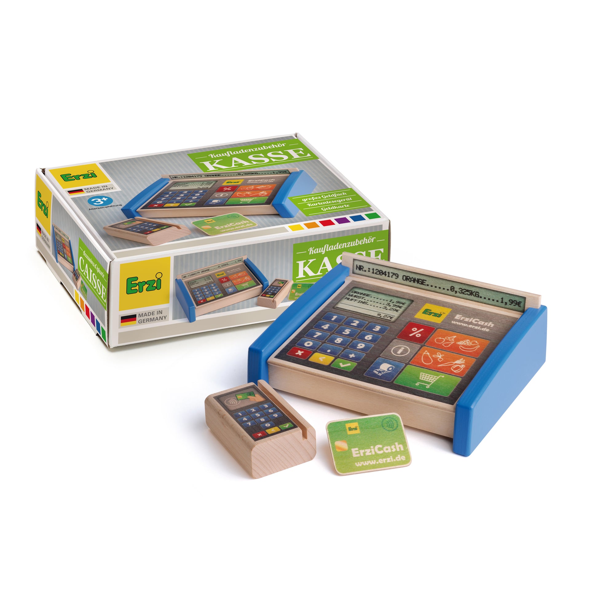 Незаменим, когато играете в магазина. Модерната цветна дървена каса с голям "Тъчпад", дисплей и просторен джоб за игрални пари. Отделният четец на EC карти предлага възможност за използване на предоставената карта - дръпнете или просто затворете. Ще накара децата да се почувстват като възрастни. Ще развие умствени и двигателни умения и способности като отговорност.