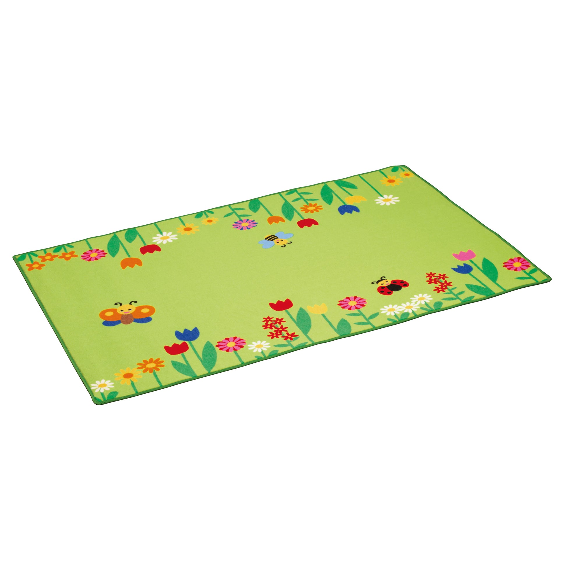 Какво по-хубаво от това да се разпрострете на цветна поляна? Килимът за игра Erzi цветна поляна, украсен с разнообразни форми на цветя и животни, е идеална основа за всеки кът за игра или детска стая. Всички килими за игра Erzi са изключително здрави с допълнително сплъстяване от долната страна, за да се предотврати навлизането на студ.