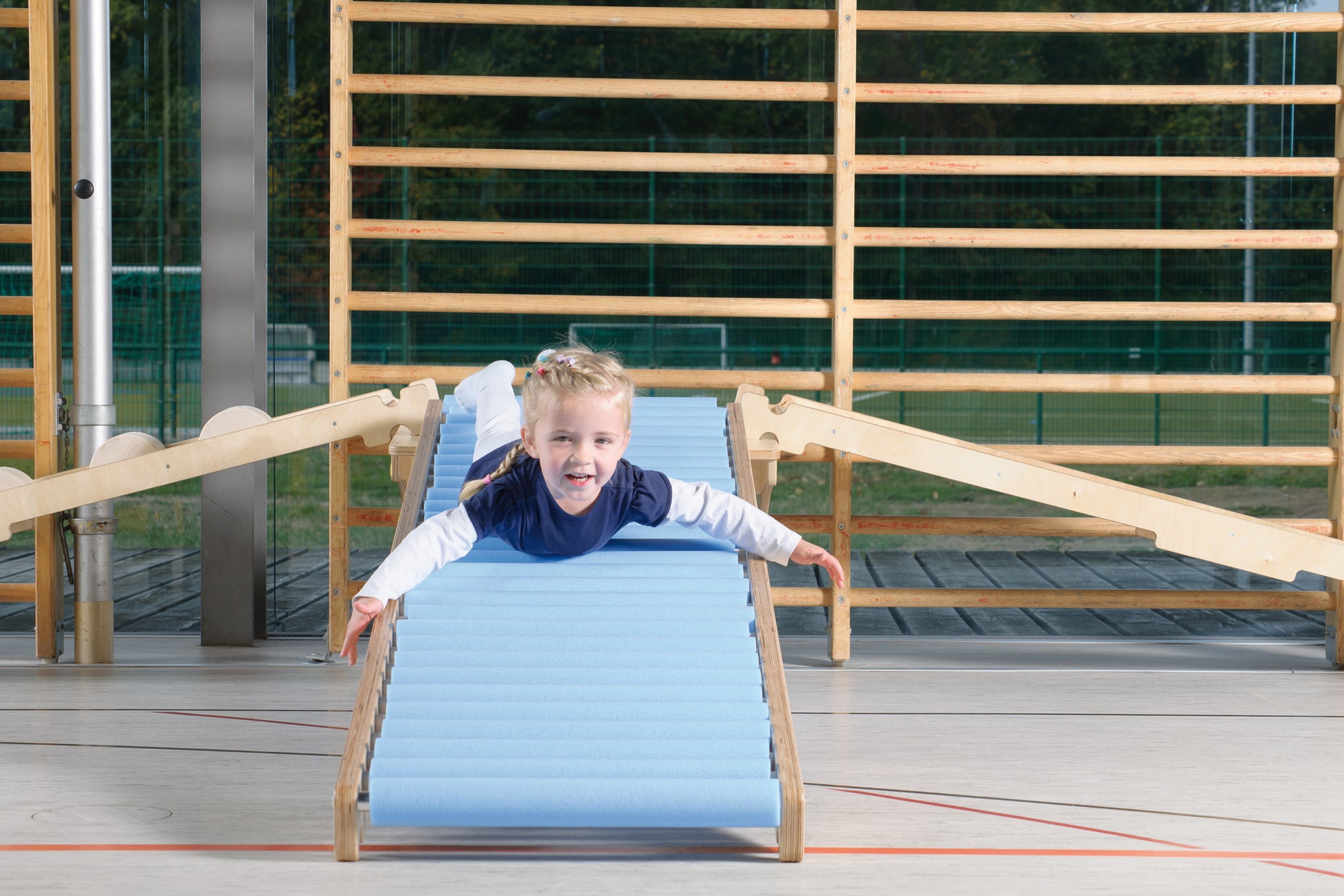 Катерене, плъзгане, балансиране: тук се изисква пълно физическо усилие. С тези 4 елемента можете да създадете най-разнообразните предизвикателства. Платформата може да бъде окачена на стандартни стени (100 см, пръти Ø 35 мм). След това балансиращите дъски и ролковият плъзгач се закрепват към него. Балансиращата дъска „Тактилна пътека“ очарова с петте материала, които правят много различни качества осезаеми. „Клоните“ на едноименната дъска за балансиране трябва да бъдат преодолени или заобиколени като малки препятствия; на наклонената равнина полукръглите клони стават стъпала. Ролковата пързалка позволява особено забавно „спускане“. Разбира се, можете да използвате и балансиращите дъски, легнали плоски. Това е особено подходящо за начинаещи, за да се запознаят с изискванията на дъската за балансиране и собствените си физически способности. Можете също така да комбинирате тези елементи с други спортни кутии или трапецовидни блокове. Между другото: Разбира се, при нас можете да получите всички включени елементи поотделно.