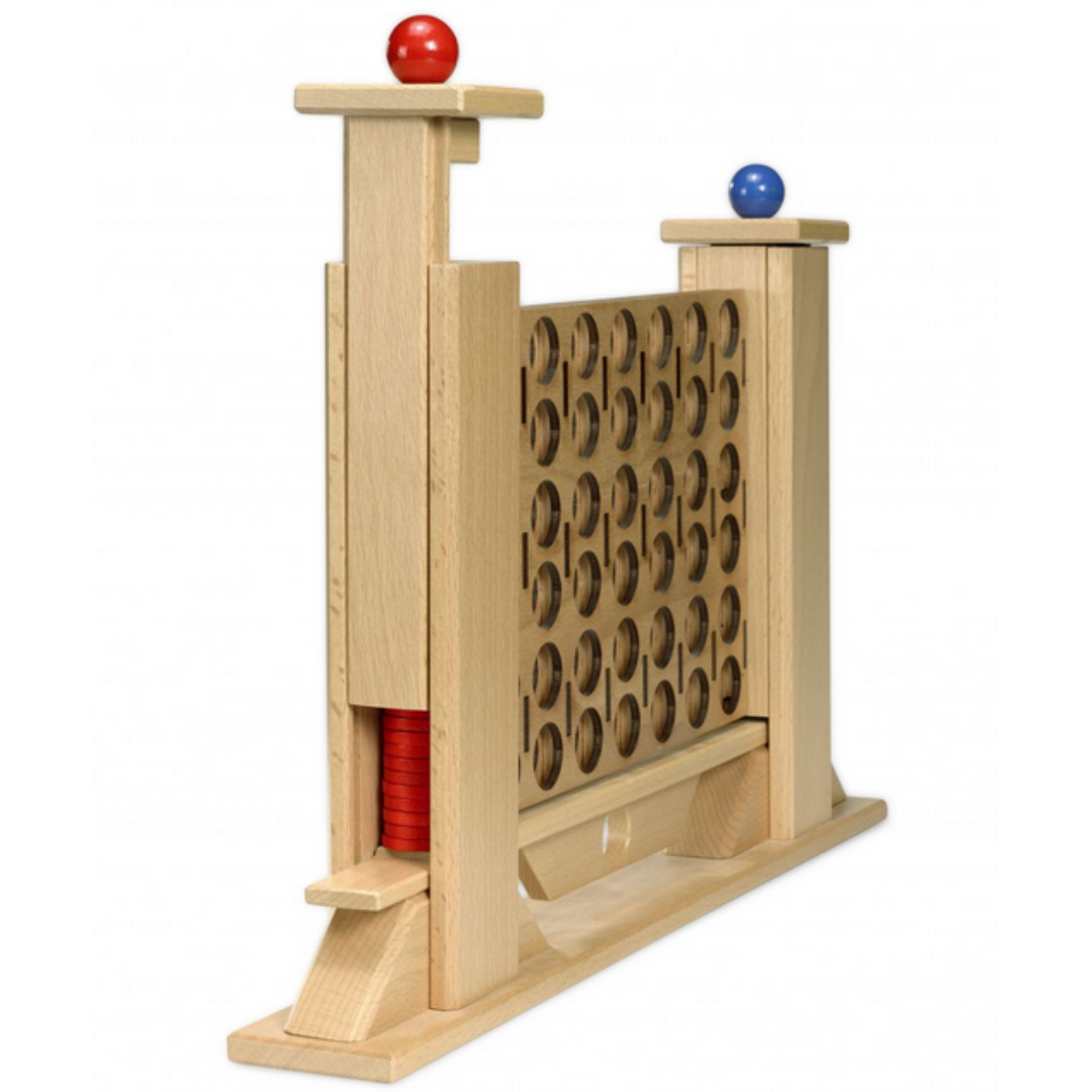 Открийте новата забавна игра Tower Bridge от Fagus! Тук класическият Vier печели иновативен дизайн: Парчетата са подредени в изправените кули преди началото на играта. Благодарение на един умен механизъм, кулата отделя парчетата едно след друго и създават предпоставки за игра с напражение и много тактика. След играта, просто наклонете дъската и приключението започва отначало. Тази игра насърчава стратегическото мислене и осигурява часове забавление за цялото семейство. Идеален за деца на възраст от 5 години и устойчиво изработен от дърво.