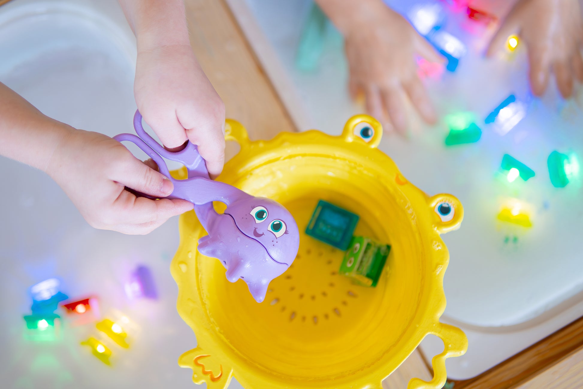 Перфектни за загребване, хващане и пресяване, тези забавни инструменти от медицински силикон развиват фината моторика, координацията око-ръка и сръчността на малките пръстчета.