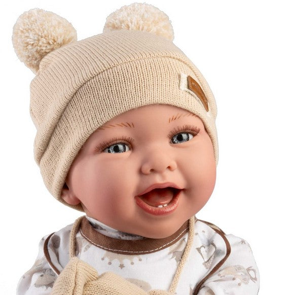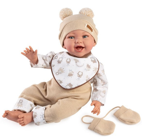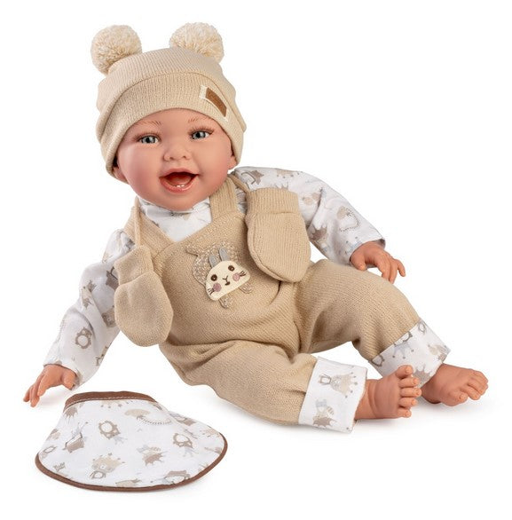 Голяма Кукла От Винилова Гума Oliver, с бежови дрешки, тениска, шапка, лигавник и ръкавици, 42 см