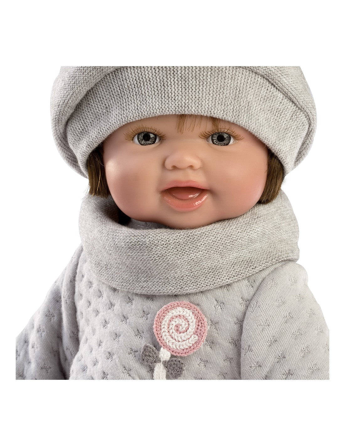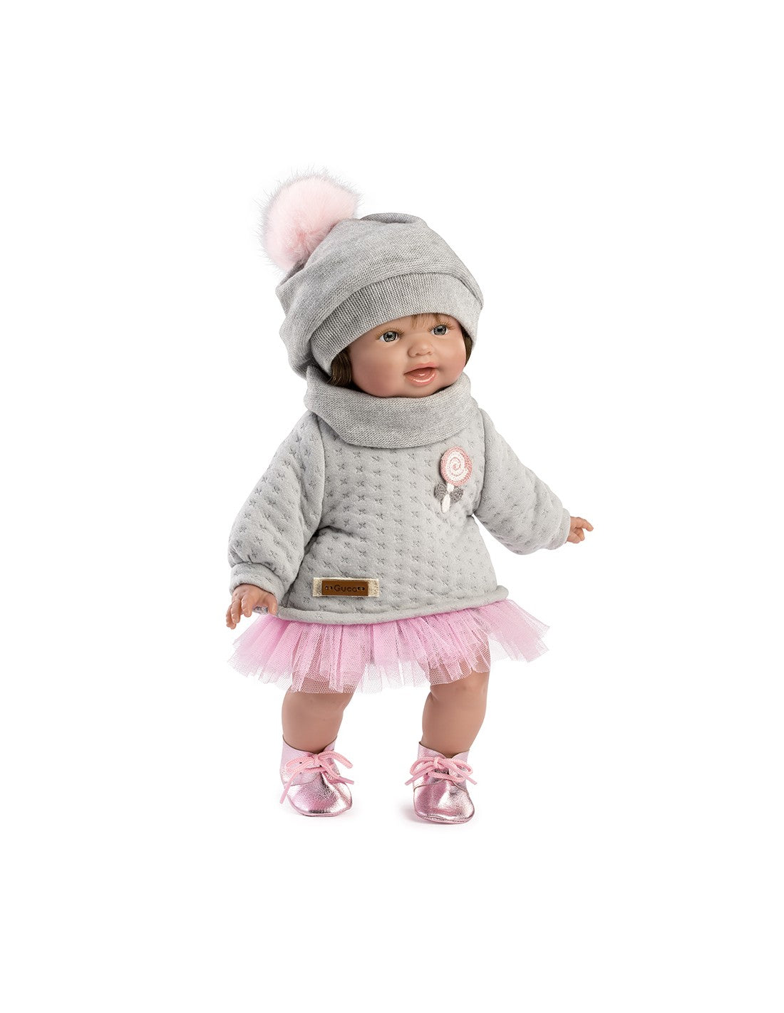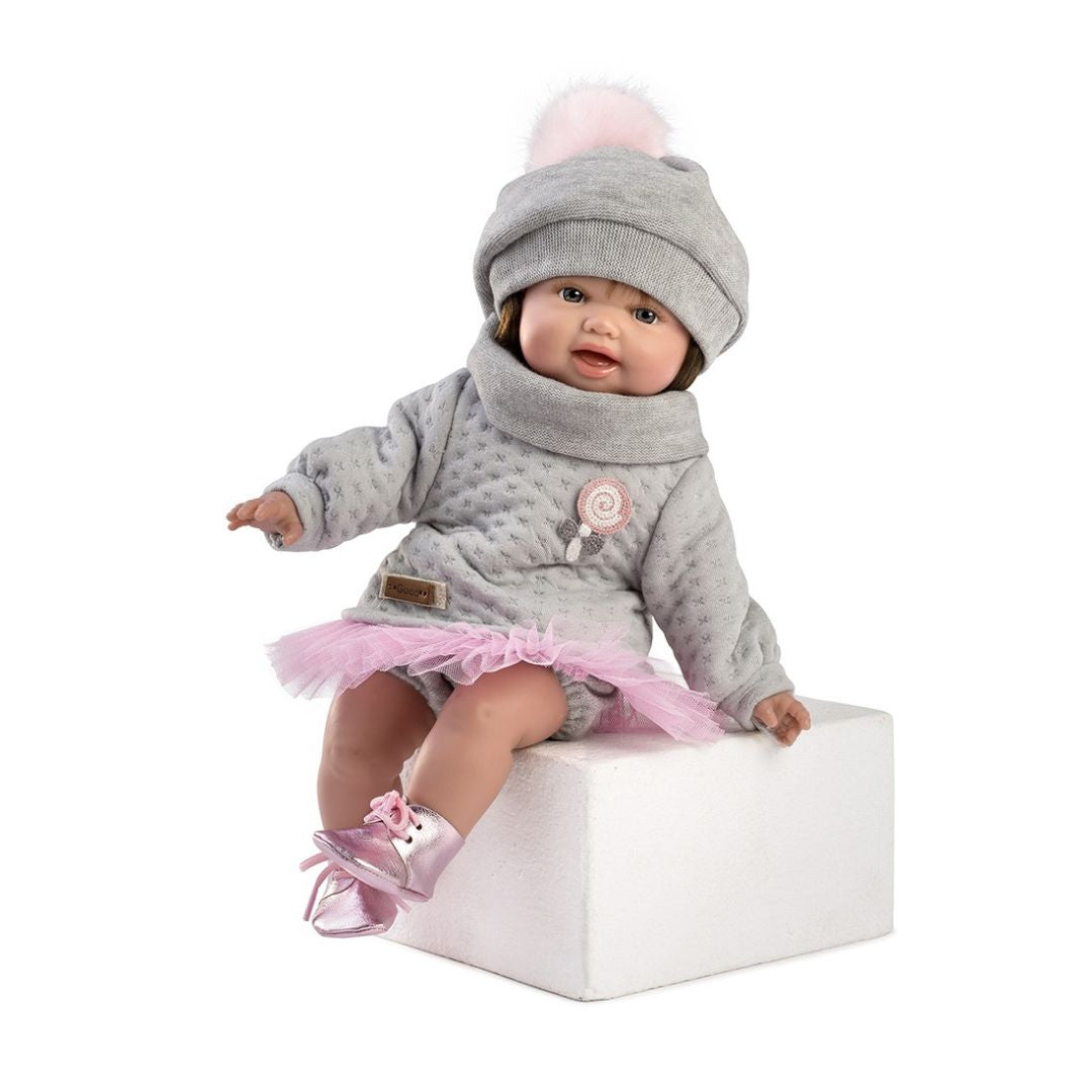 Красива Кукла От Винилова Гума Nuria Брюнетка, Сива Рокля С Розов Тюл, 36 см