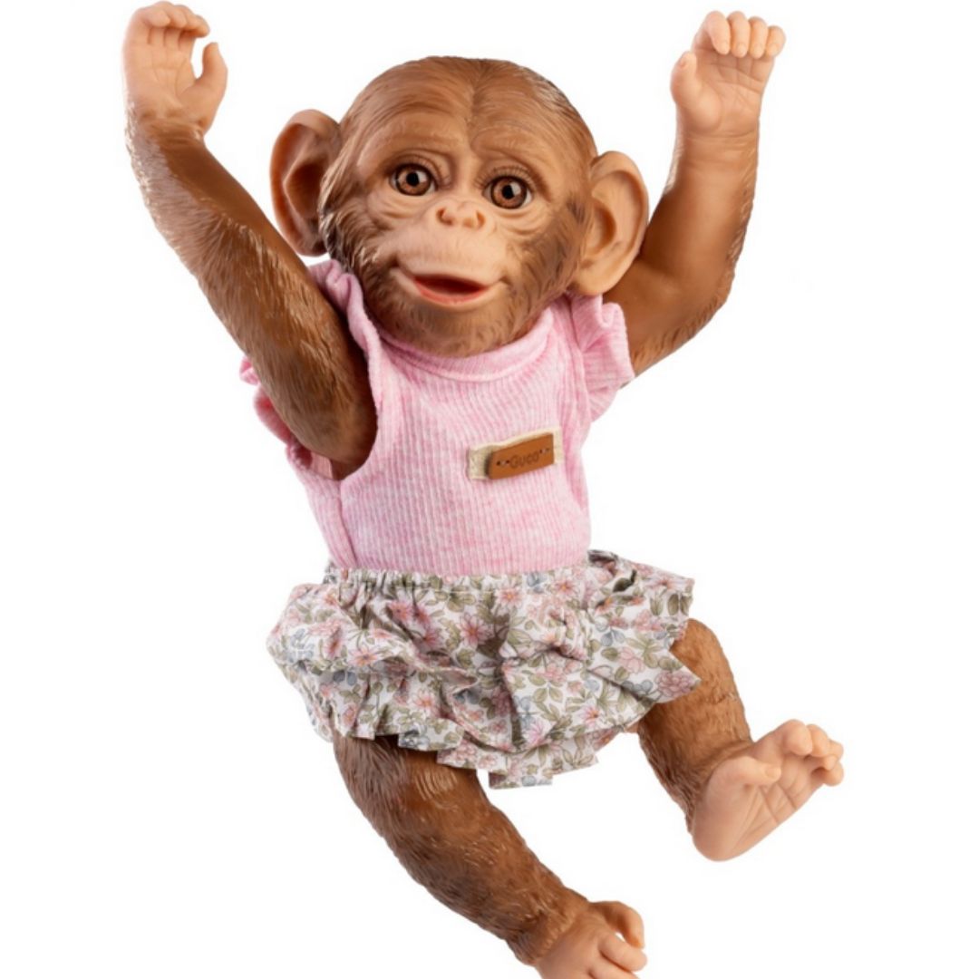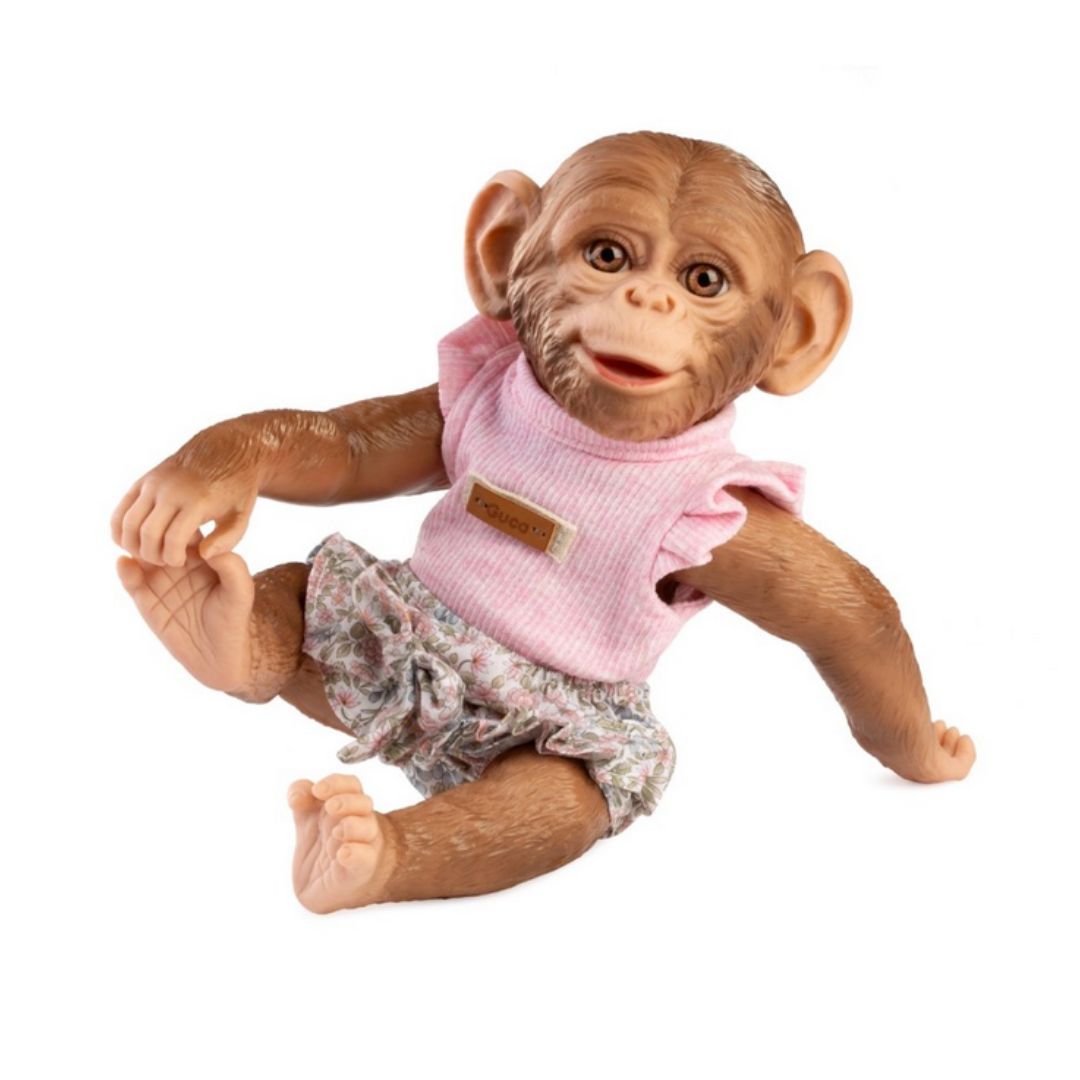 Zoo Reborn, маймунка бебе, розова тениска и гащички на цветя, 32см