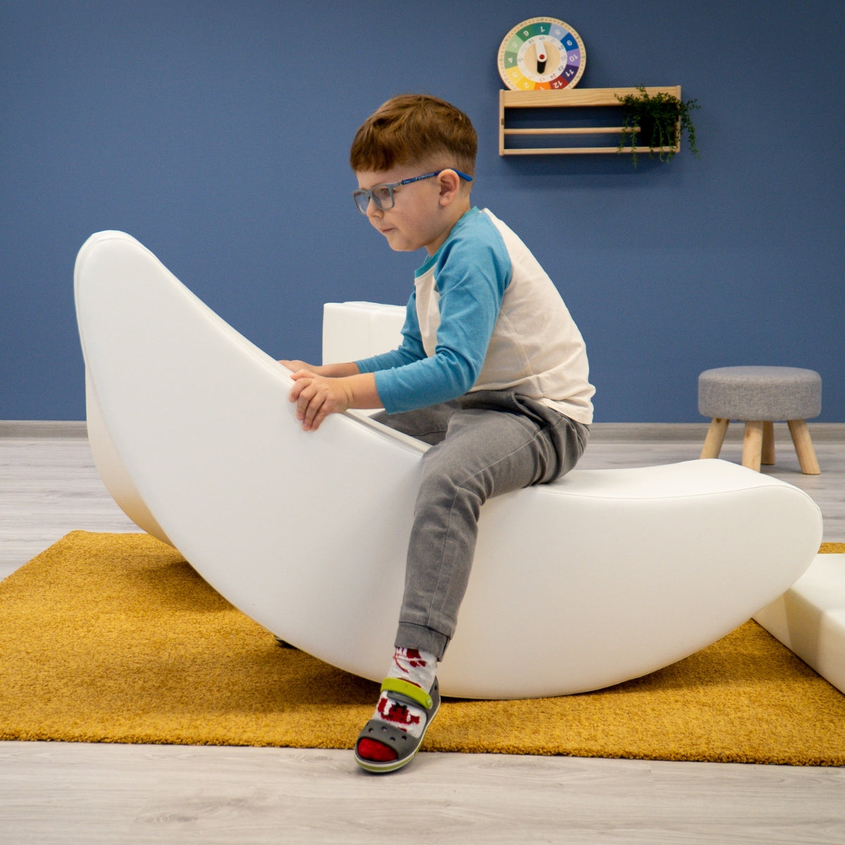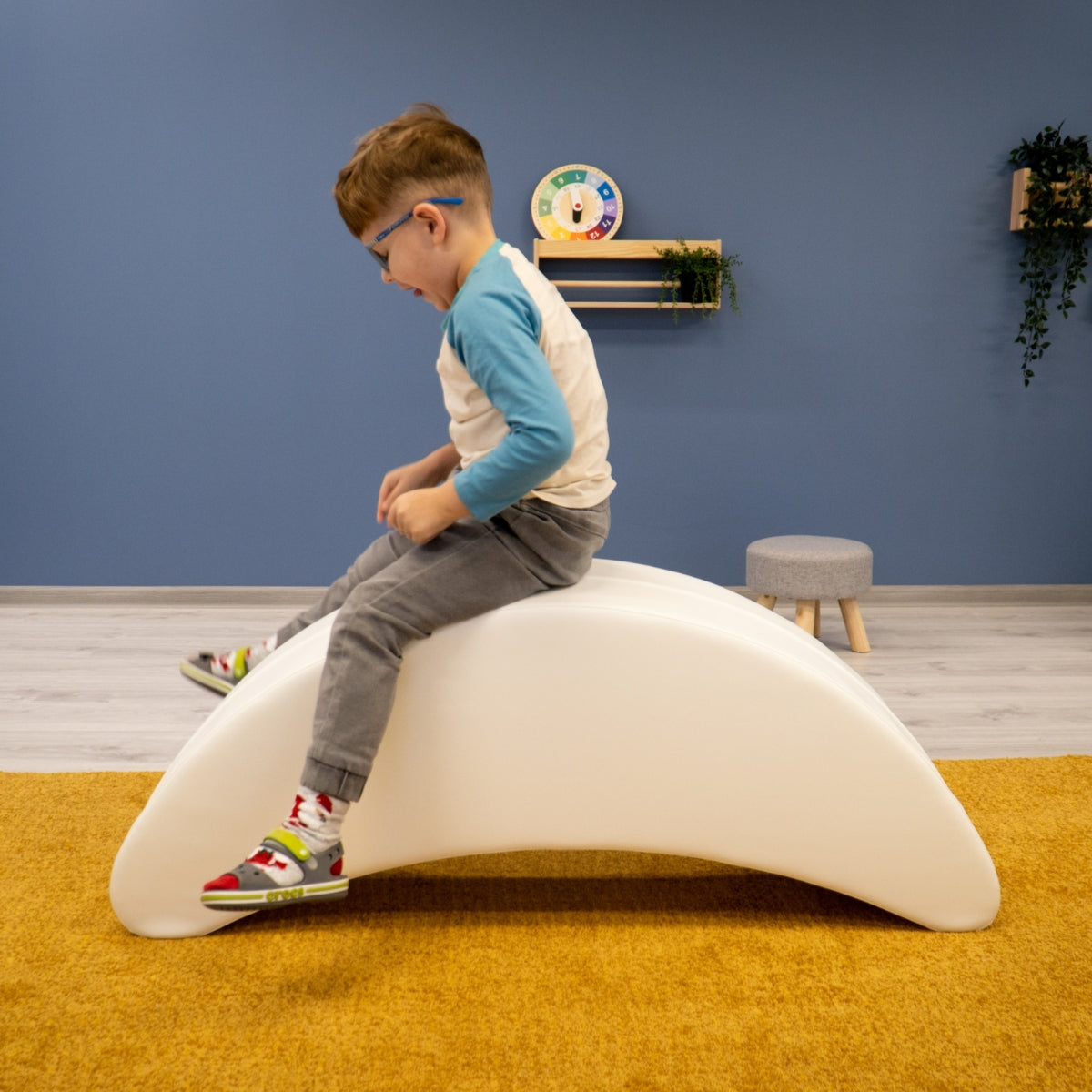 Пригответе се за забавно яздене на банан. Този мек еквивалент на класическа люлееща се играчка е идеален начин да тренирате баланса и въображението на Вашето дете. Той също така помага за развитието на груби двигателни умения, баланс, координация и развитие на мускулите. Това е вълнуващ начин детето Ви да остане активно и ангажирано.