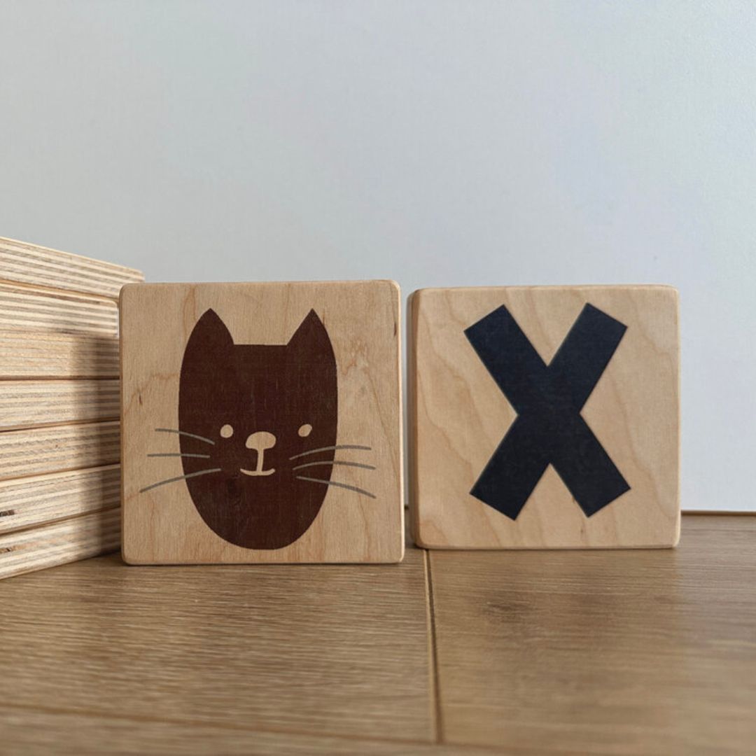 Игра на Морски шах състояща се от 9 квадратчета с принт от двете страни. Едната е печат на Х, а другата на О под формата на закачлива коте.
