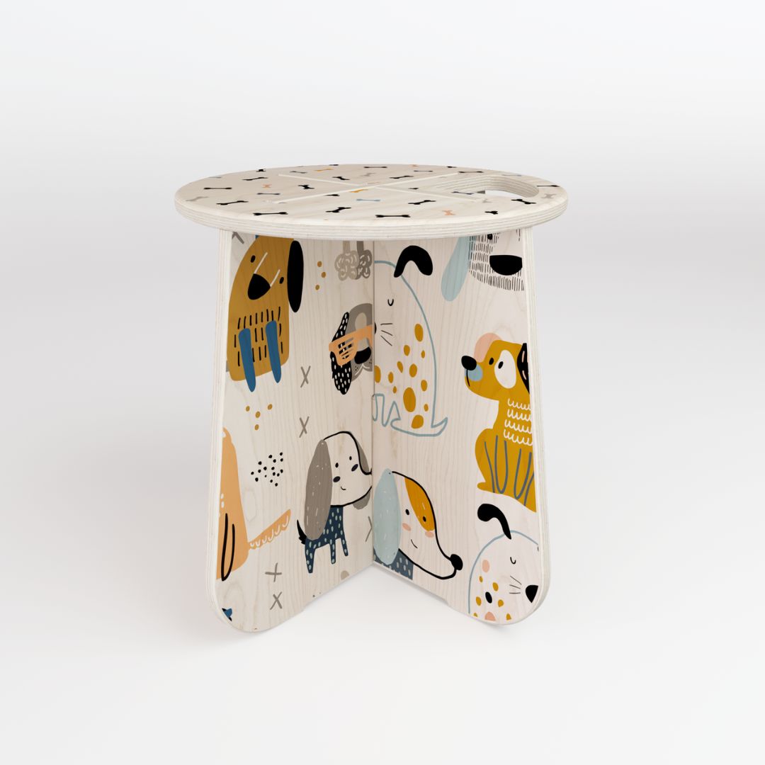 Детската табуретка KOIRA, от серия OTTO, ще Ви заинтригува с различния си цветен дизайн. С принт на малки разноцветни кокалчета на седалката и на кученца на краката, ще стане любима на малки и големи. Тази персонализирана табуретка ще бъде идеалното допълнение към спалнята или зоната за игра на всяко дете. Може да се използва като табуретка или компактна маса до леглото, или каквото подходящо приложение намерите. Подходяща е и за възрастни, можете да седнете на нея и да им прочетете любима приказката за лека нощ. Със сигурност вкъщи ще има съревнования кой да бъде първи.