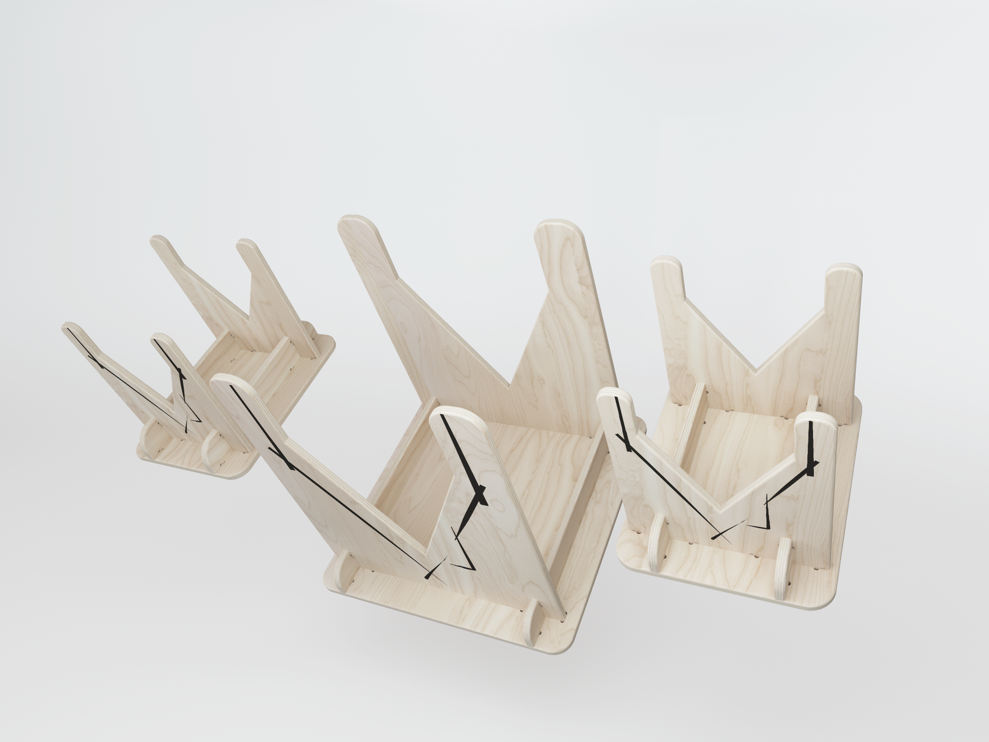 Комлектът е изработен изцяло от естествен дървен материал - брезов шперплат. НЯМА наличие на остри ръбове, всички те са заоблени, а повърхностите внимателно шлайфани, така че да бъде напълно безопасен за малки деца.