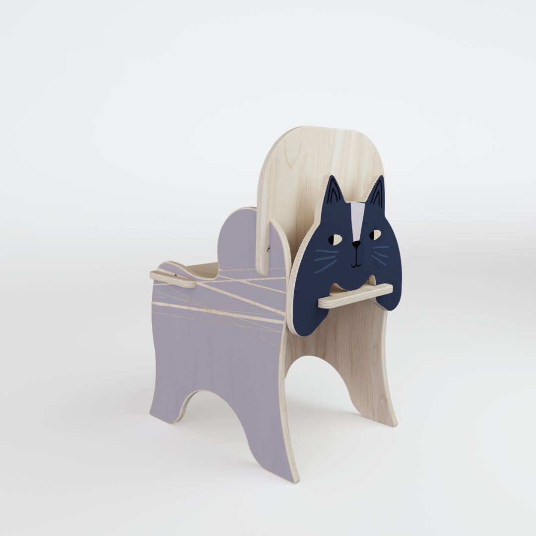 Детският стол е направен от естествен дървен материал - брезов шперплат. Столът KATTEN е специално проектиран за малките любители на приказния свят. Различното при тези столчета е, че разстоянието между облегалката и фигурката с мече, се използва за съхранение на книжки. Главата на животинчето може да се маха и слага, така че Вашето дете да си разгърне въображението и да играе на воля.