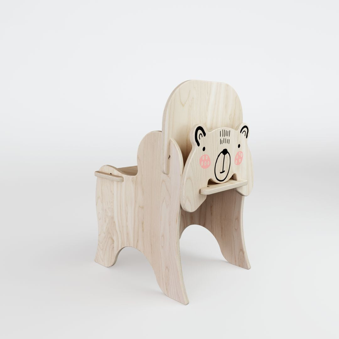 Детският стол е направен от естествен дървен материал - брезов шперплат. Столът BJØRN е специално проектиран за малките любители на приказния свят. Различното при тези столчета е, че разстоянието между облегалката и фигурката с мече, се използва за съхранение на книжки. Главата на мечето може да се маха и слага, така че Вашето дете да си разгърне въображението и да си играе на воля.