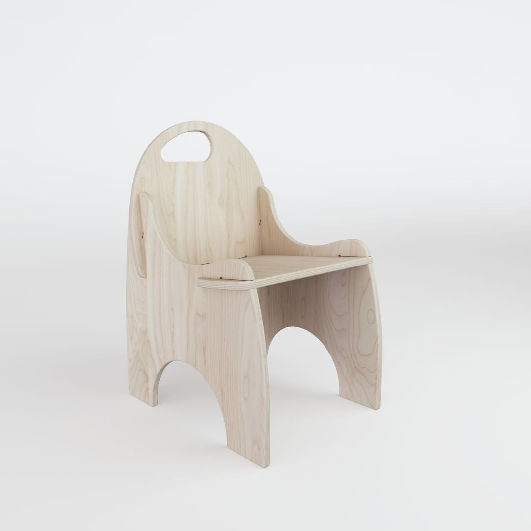 Този модел детски стол се характеризира с напълно изчистения си дизайн и естествен цвят, който идеално ще се впише във всеки един интериор на детската стая. В горната част на облегалката има дръжка, която позволява лесното преместване на столчето.