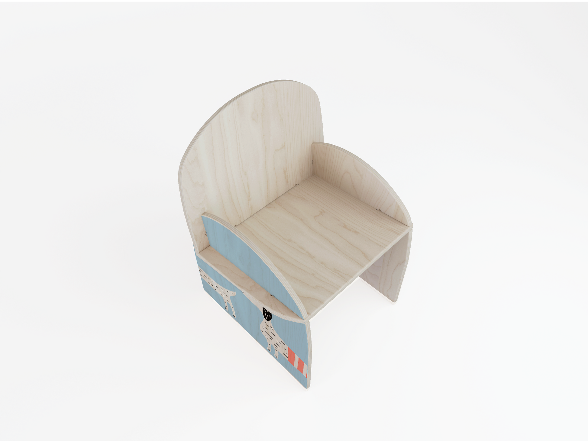 Комплектът съдържа: 1 дървен стол (функционална играчка за деца)