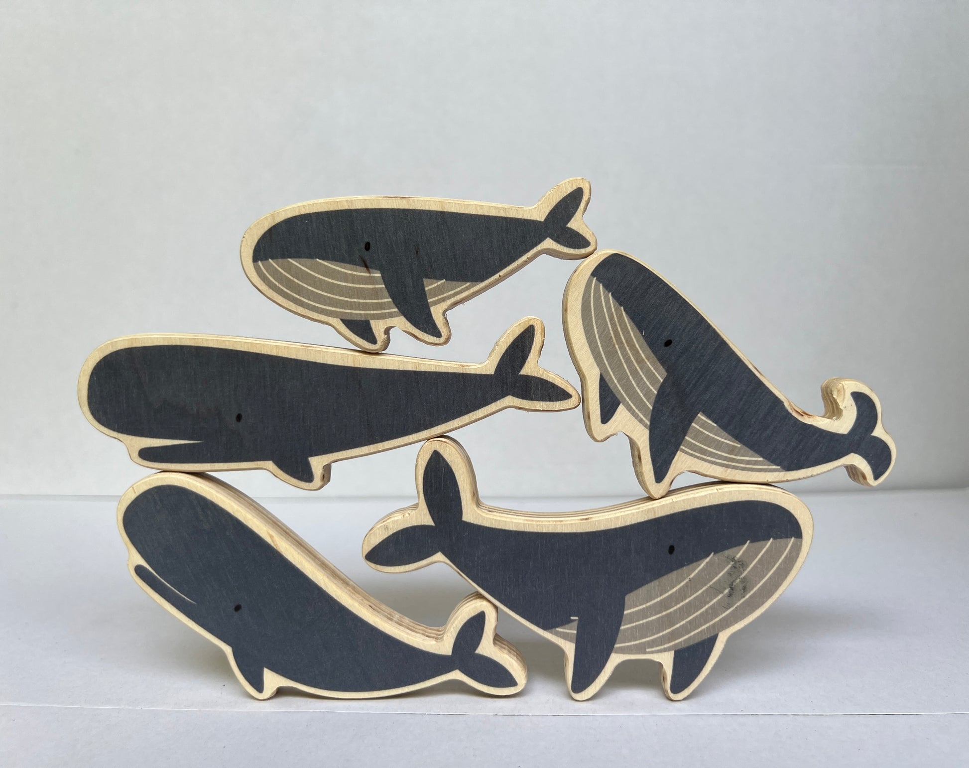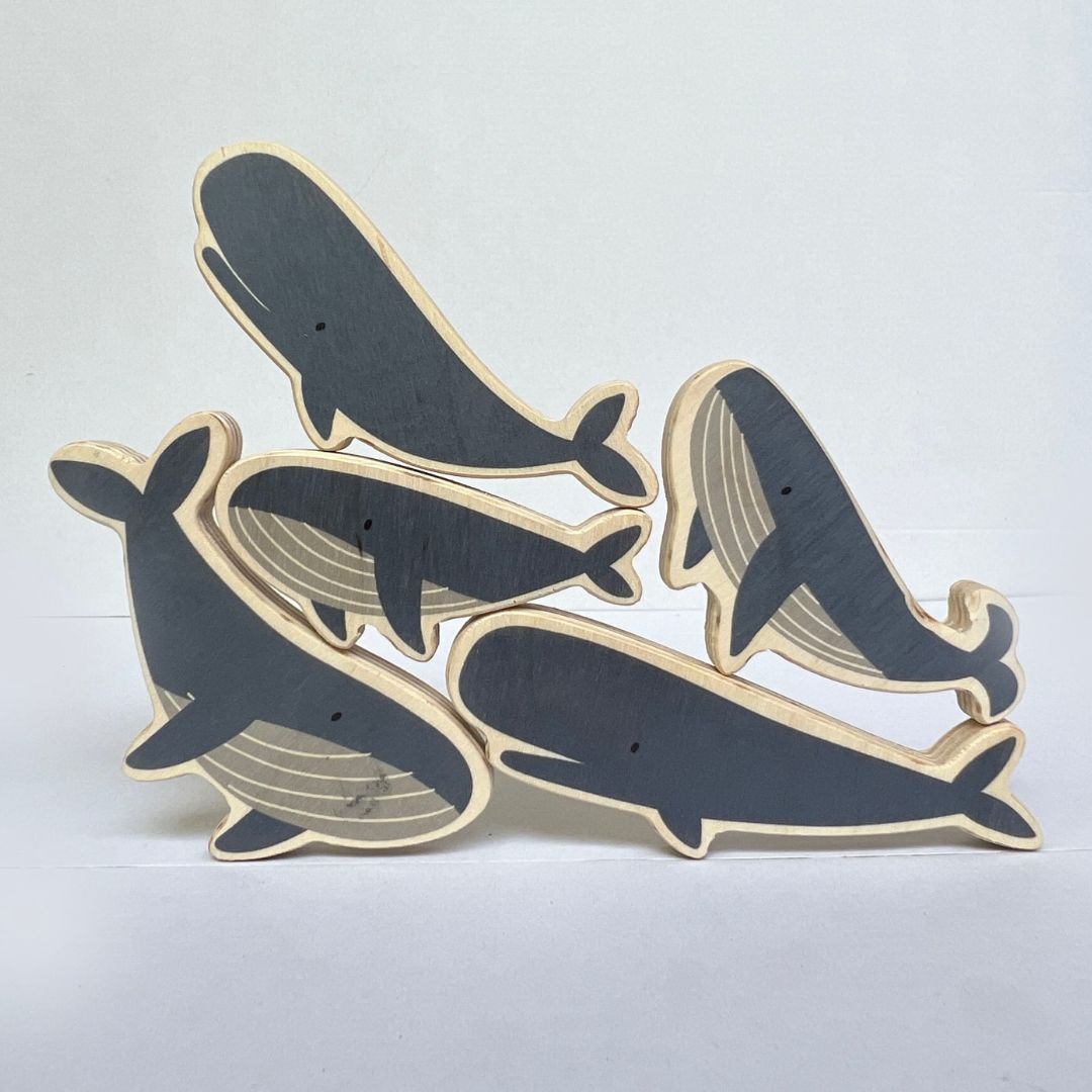 Необятен морски свят, сет от 5 различни фигурки, направени от брезов шперплат.