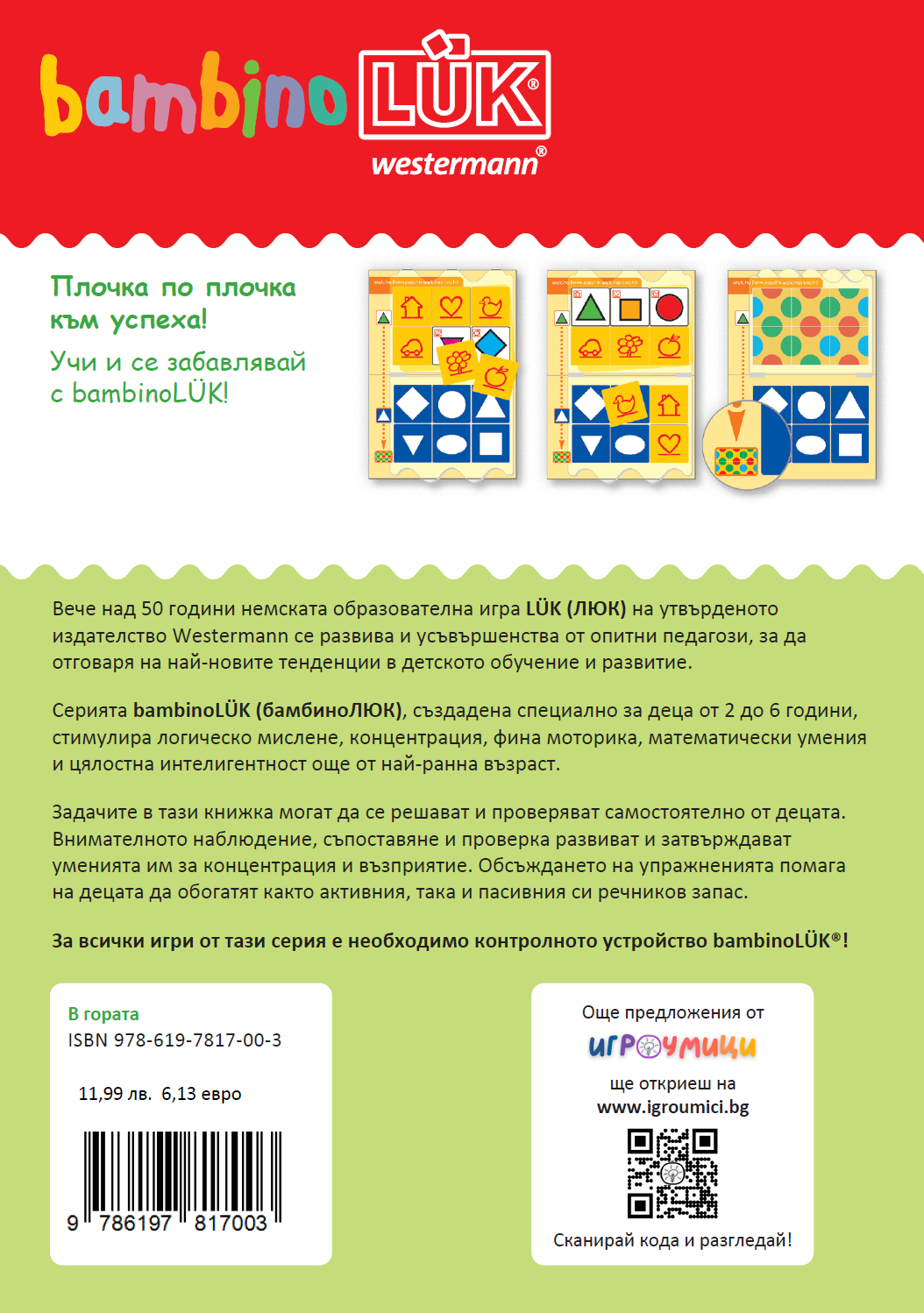 Серията bambinoLÜK (бамбиноЛЮК), създадена специално за деца от 2 до 6 години, стимулира логическо мислене, концентрация, фина моторика, математически умения и цялостна интелигентност още от най-ранна възраст.
