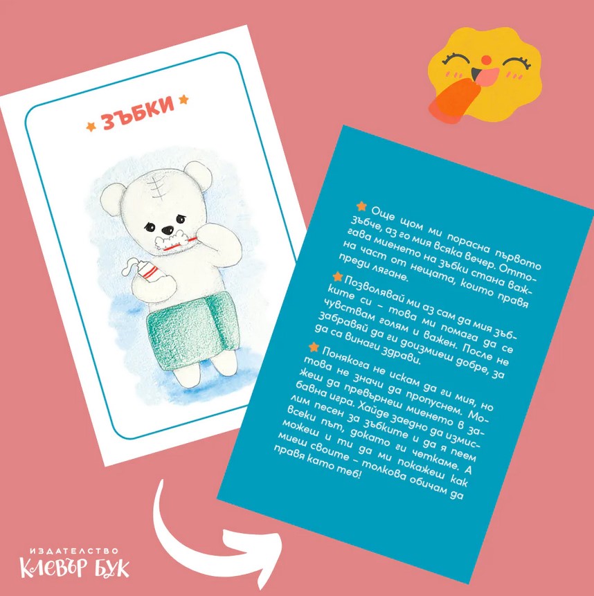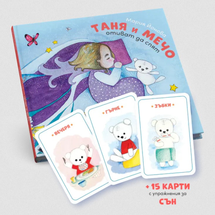 "Таня и Мечо отиват да спят" - книга с активни карти за подпомагане на рутината на децата и по-лесното им заспиване.
