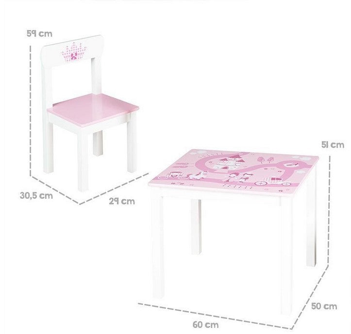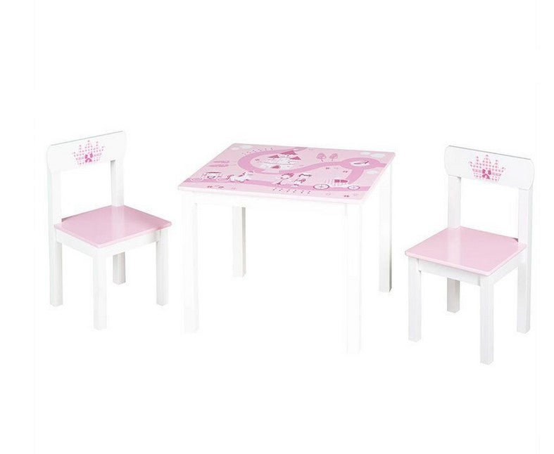 Детският комплект Krone от Roba с 3 части е изработен от лакиран и приказно щампан МДФ и е идеално съобразен с нуждите за сядане на деца от 2 до 10 години.