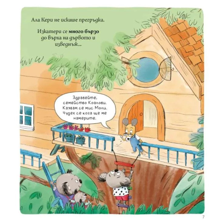 От мисълта да се сприятели с някого стомахът на коалата Кери се присвива. Тя се притеснява дори да поздравява. За щастие, Мис Моли винаги е готова да помогне - в своето училище на върха на дървото.