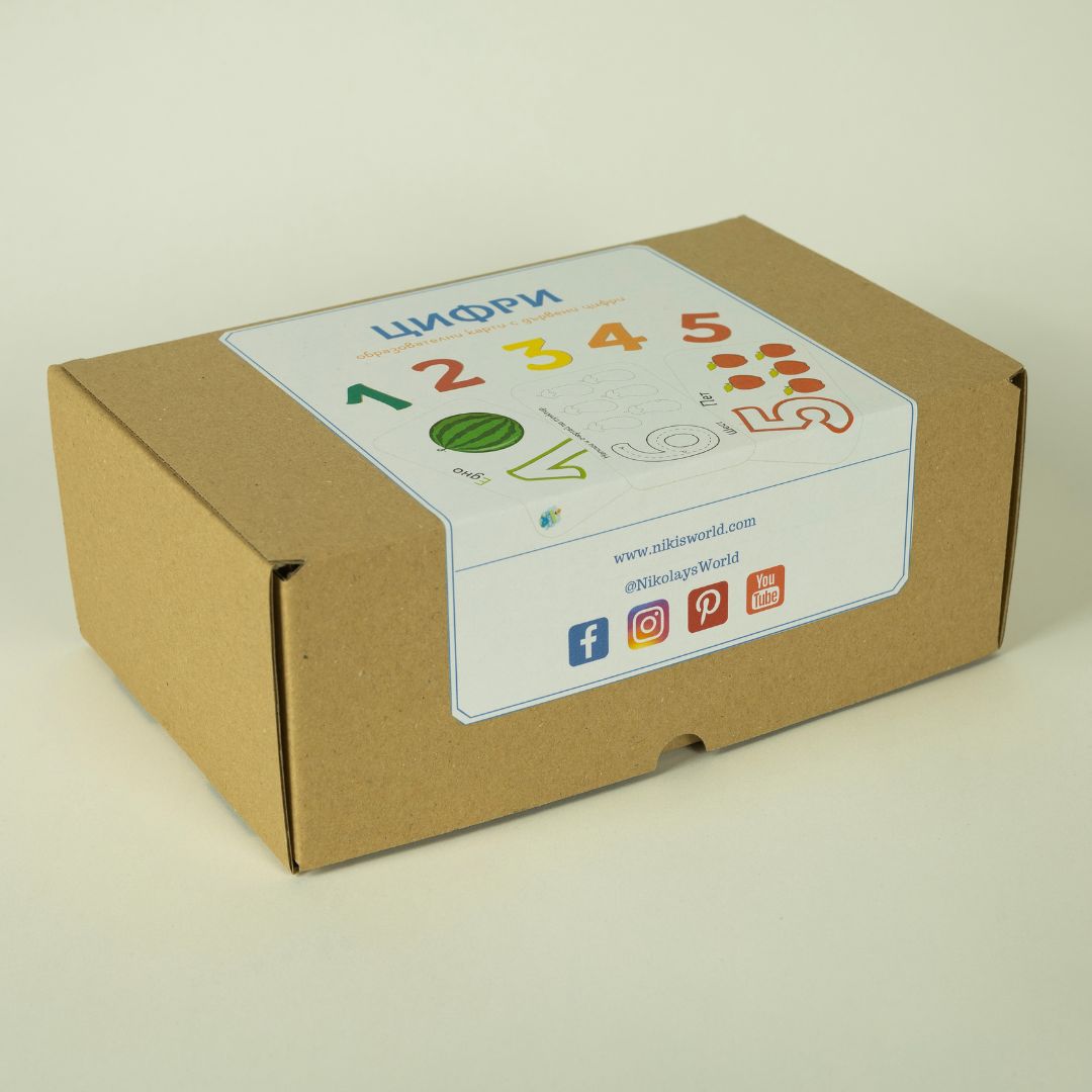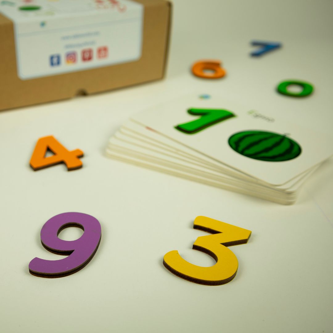 Картите са тип пъзел от предната страна, представляват цифра с плод или зеленчук, и дават възможност вътре да се поставят дървените числа. А на гърба им е изписано съответната цифра, както и изображение с пунктир. Дървените числа са 4 мм, и са боядисани само от едната страна, за да се предотврати огледалното им писане или поставяне. Използваният шрифт е Adys, специално разработен да улеснява при четене хората с лека до средна степен на дислексия. Шрифтът е създаден от ©Кристина Костова, повече за него може да научите на www.adysfont.com.