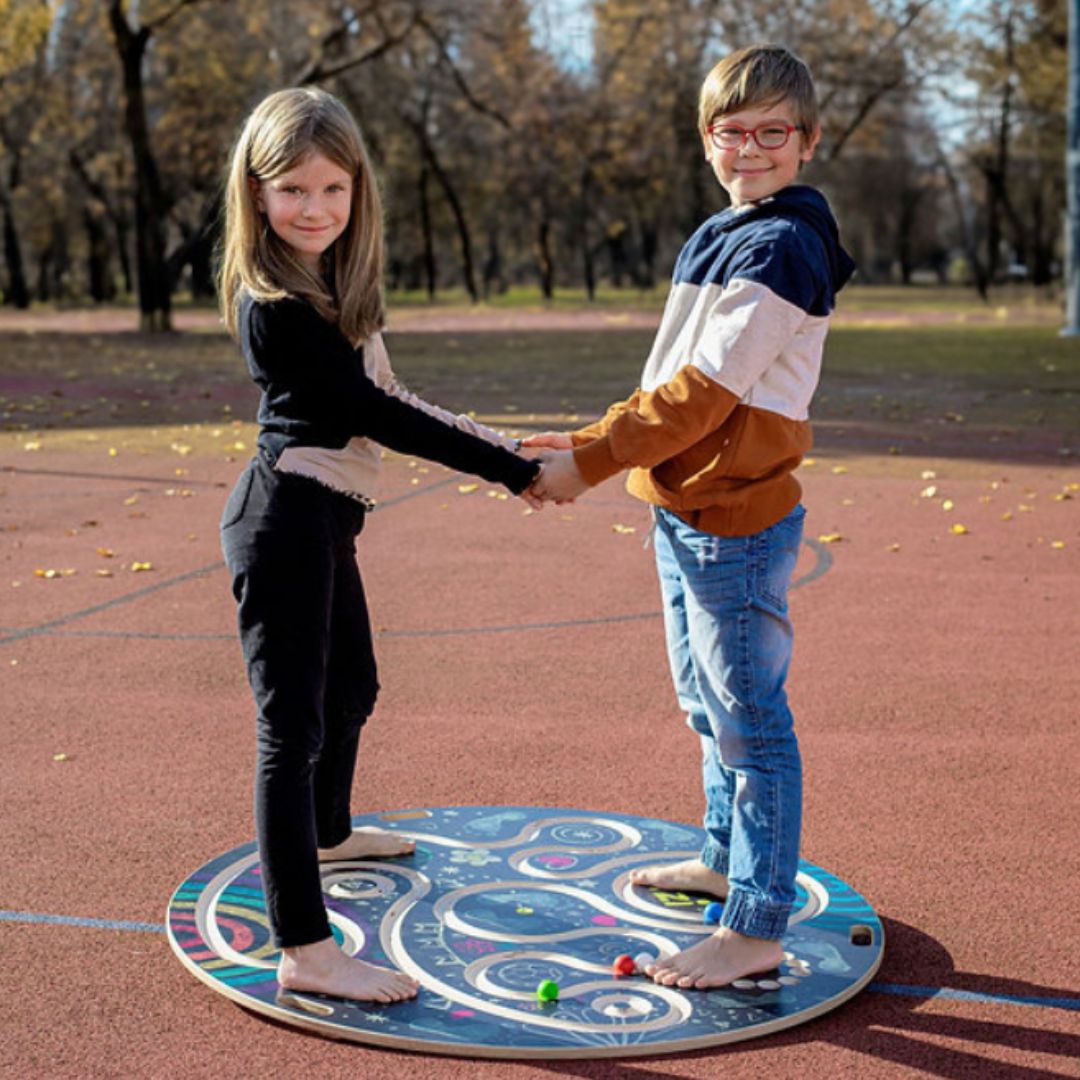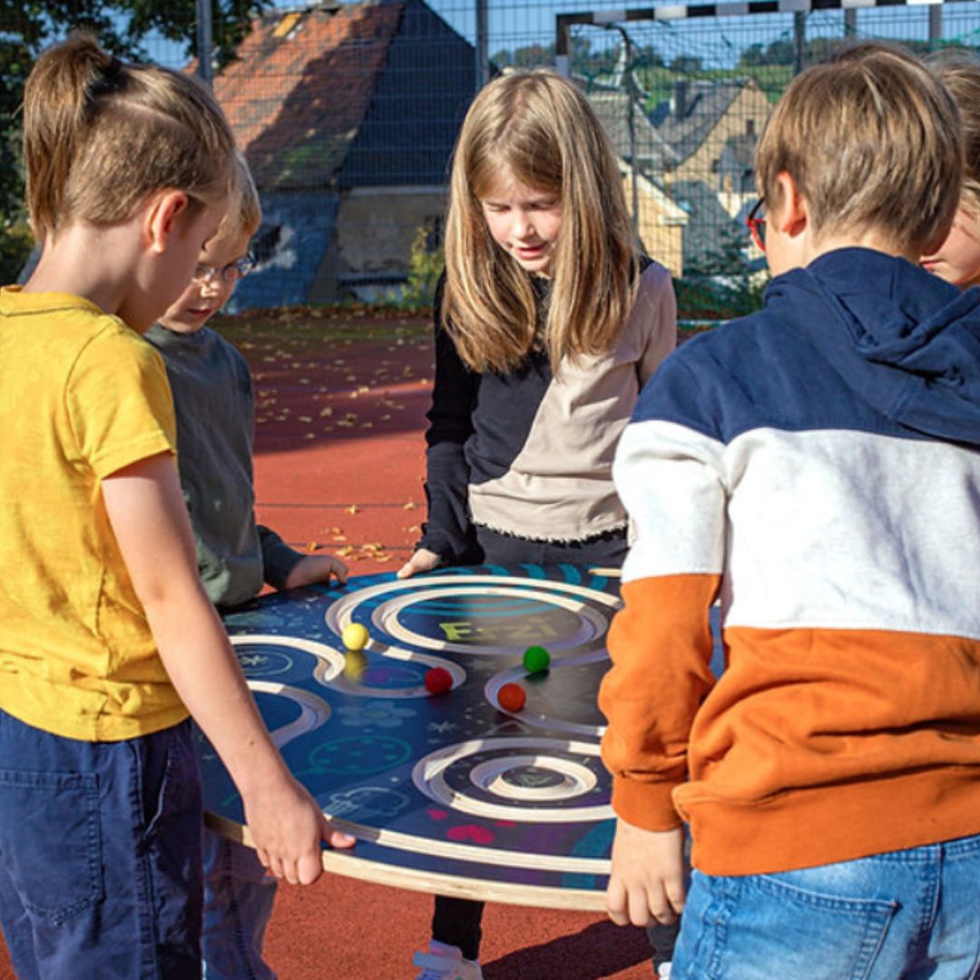 Балансиращата игра Erzi Team-Disc е иновативна и устойчива на надраскване дървена играчка, която развива баланса, координацията и работата в екип. Подходяща както за деца, така и за възрастни, тази координационна игра предлага разнообразие от възможности – от самостоятелна сензорна игра до екипни упражнения за двама, трима или четирима участници.