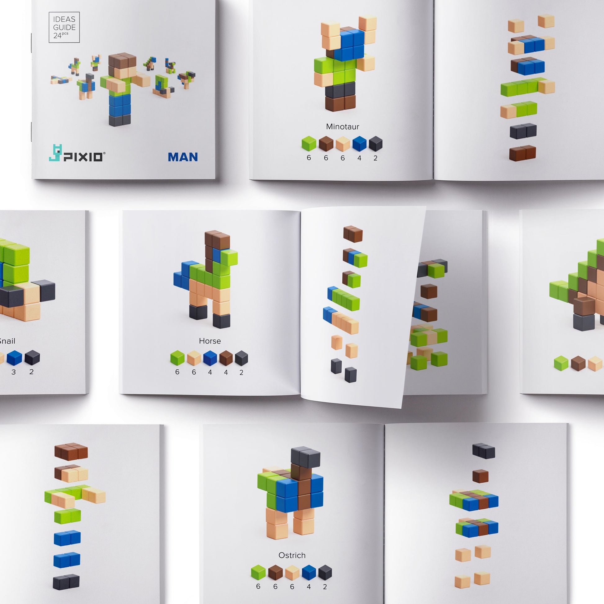 Този малък PIXIO човек може да се превърне в поне още 10 героя. Изберете какъв вид обект да изградите с вашите PIXIO блокове - истински или митични. Ще получите 24 PIXIO блока в 5 цвята, за да вдъхнете живот на въображението си. Това е идеалният брой PIXIO блокове за създаване на човек, охлюв, водно конче, хамелеон, щраус, динозавър, чапла или дори минотавър.