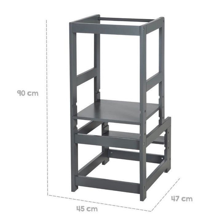 Готвенето заедно е улеснено от учебната кула, тъй като вие като родители имате свободни ръце. Благодарение на 3-кратната регулируема височина на основата и стълба, учебната кула може да се използва дълго време.