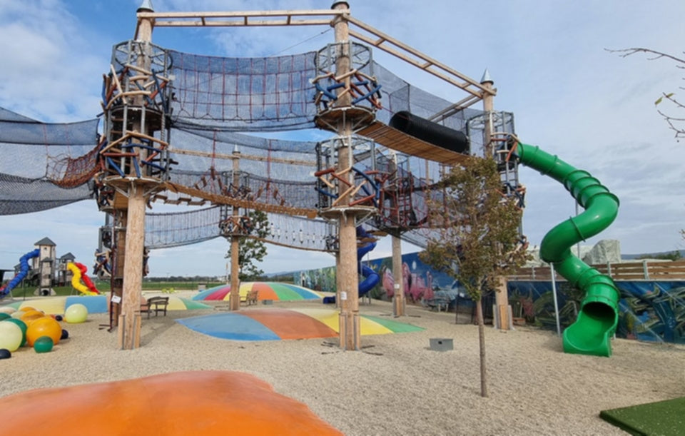 Gusoche предлага изграждане на въжени замъци AERO, които съчетават дърво, метал, въжета и мрежи.