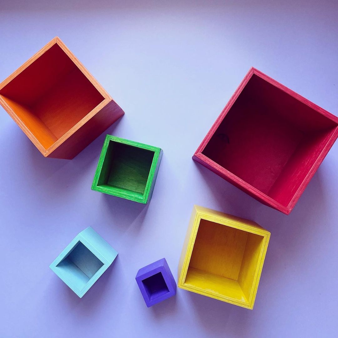 Детето може да подрежда, сортира кутиите по размер и цвят, да строи с тях, да ги използва като къща за кукли или гараж за коли, да събира тайни съкровища и много други.