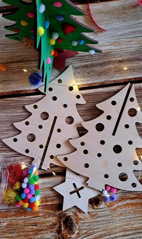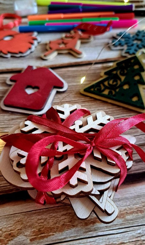 - Дървени играчки за сглобяване. Играчките за от две части и се лепят с помощта на специално лепило за дърво. Панделката, с която са привързани играчките може да се използва, за поставяне на връвчица за закачване за елха.
